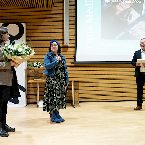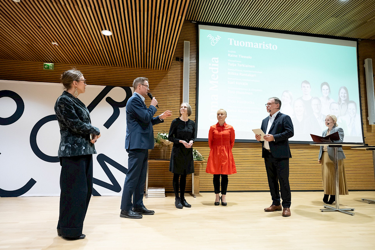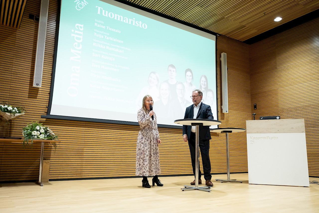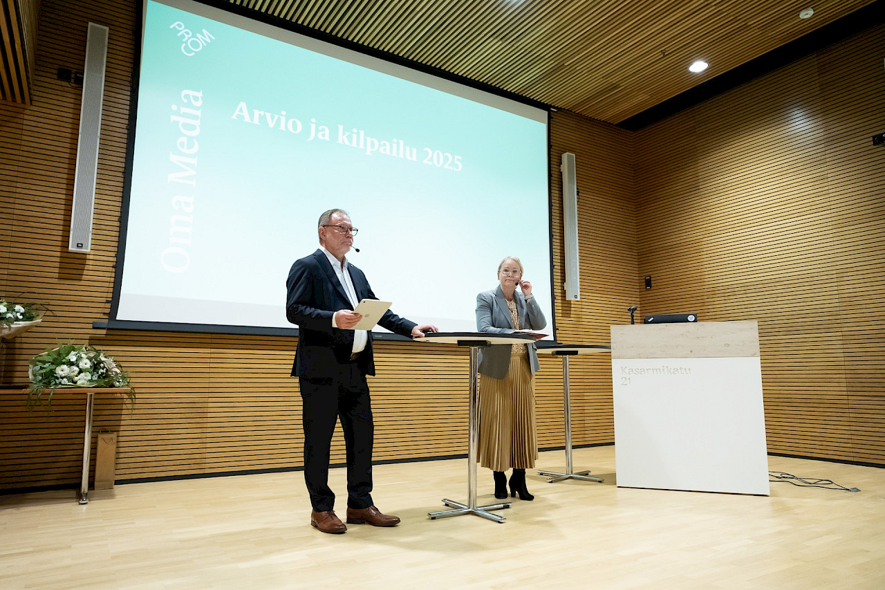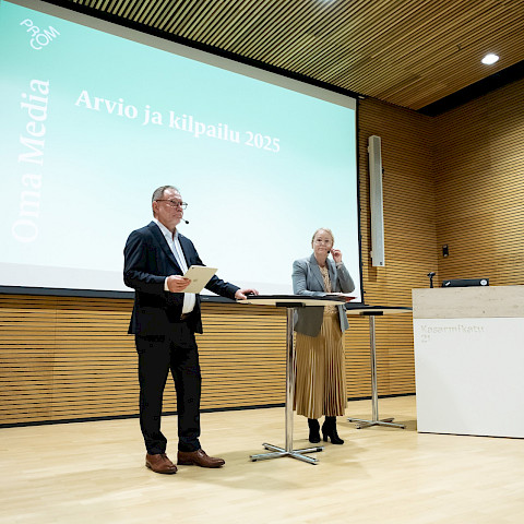 Oma Media 2025 -kilpailu huipentui 4.12.2025 järjestettyyn Media-aamuun. Aamupäivän aikana kuulimme mielenkiintoisia puheenvuoroja, joiden jälkeen palkittiin Oma Media -kilpailussa ansioituneimmat mediat. Tällä sivulla pääset palaamaan Media-aamun tunnelmiin kuvien muodossa.