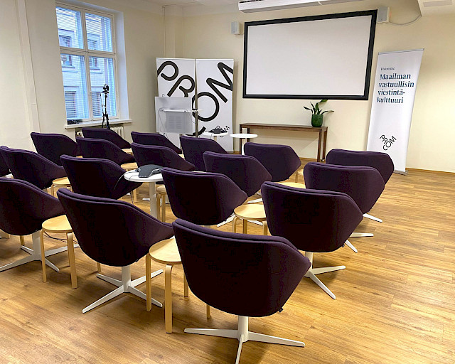 Tarjoamme viihtyisän ja hyvin varustellun tapahtumatilan Helsingin ydinkeskustassa koulutuksiin, seminaareihin, kirjajulkkareihin tai rennompiin aamiais- ja verkostoitumistilaisuuksiin. Käytössä on myös keittiö/lounge sekä kattava AV-välineistö. Tilaan mahtuu enintään 30 henkilöä luokkahuonemuodossa.