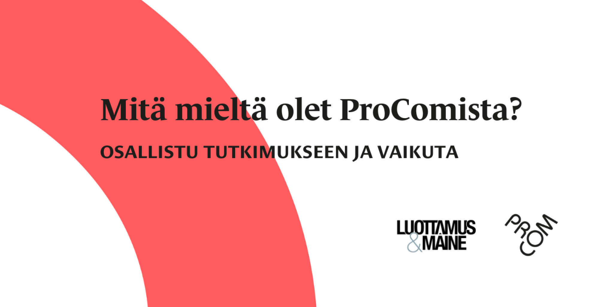 Kartoitamme viestintäalan ammattilaisten näkemyksiä ProComin toiminnasta sekä luottamusta ProComiin Luottamus&Maine -kyselytutkimuksella. Kyselytutkimus on suunnattu ProComin jäsenille ja yhteistyökumppaneille sekä muille viestintäalan ammattilaisille. Edellisen kerran vastaavanlaajuinen tutkimus toteutettiin vuonna 2023.
